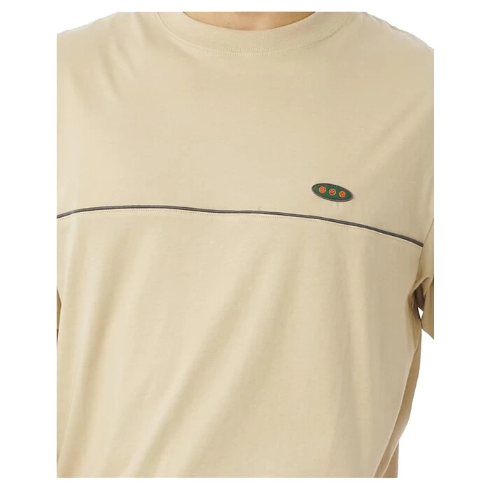 Rip Curl Archive Piping relaxed fit short sleeve t-shirt in cement for men. Branding includes a Rip Curl rubber patch and Rip Curl woven label. Made with cotton jersey. – Made from 100% cotton.