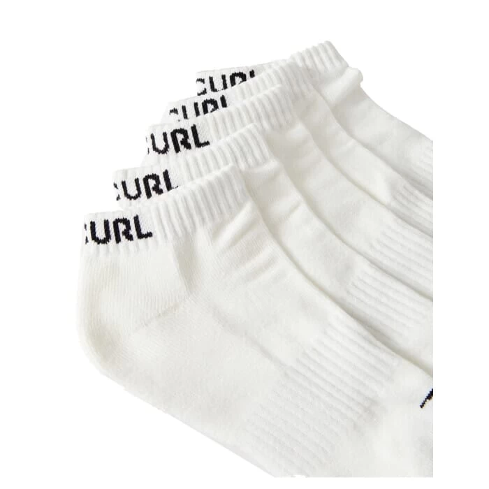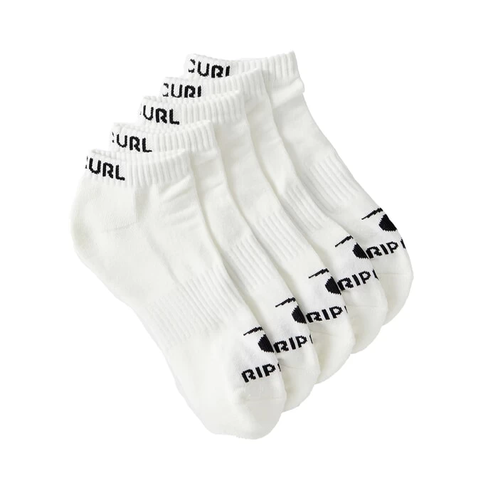 Rip Curl Brand Ankle Sock 5-Pk uk 8 – 12 crew socks in white features a arch support and terry loop cushioning. Branding includes a Rip Curl embroidered logo. Made from 80% cotton – 16% polyester and 4% elastane.