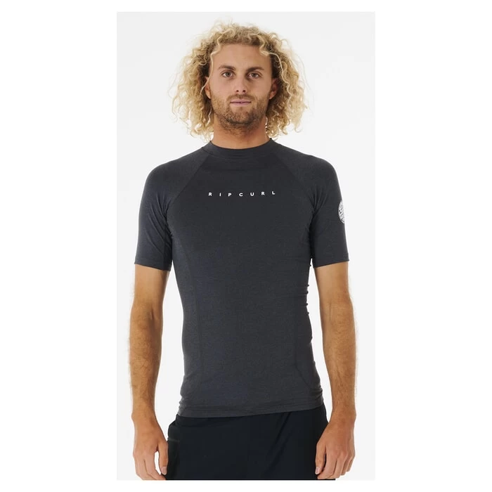 Rip Curl Dawn Patrol Performance long sleeve rash vest in black marled features a boardshort connector loop and chest print as well as sleeve print and UPF 50+. Branding includes a Rip Curl woven label. Made from 88% polyester and 12% elastane.