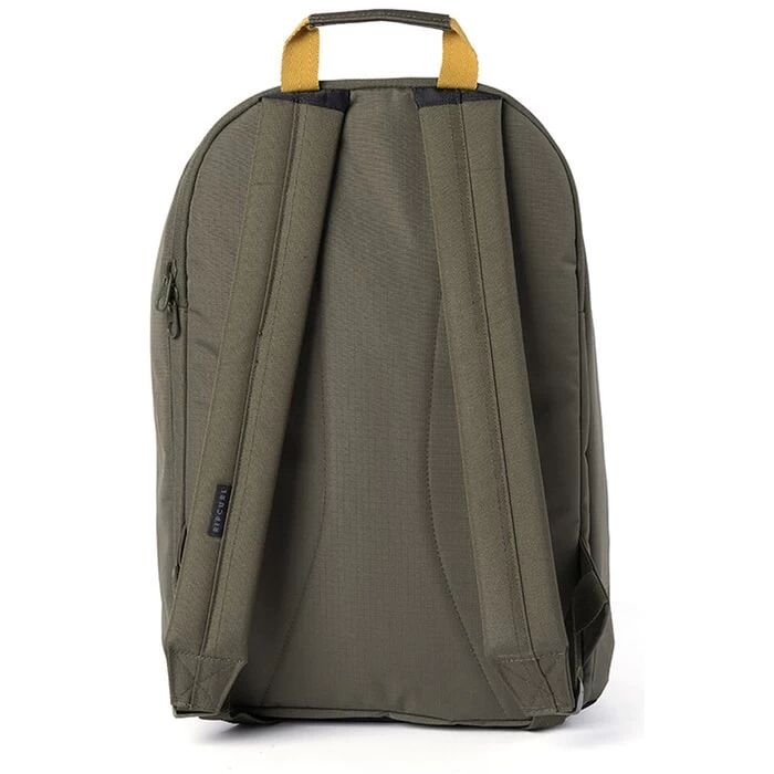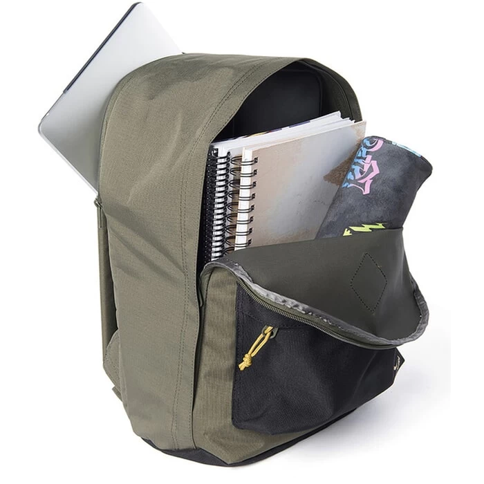 Rip Curl Dome Deluxe Stacka backpack in military green features a front pocket and grab handle as well as laptop section – padded shoulder straps and zipped main compartment. Branding includes a Rip Curl printed logo and Rip Curl woven patch. Made from 100% polyester and is 42cm high x 29cm wide x 15cm deep.