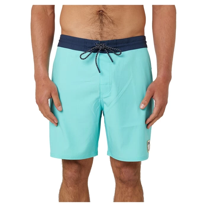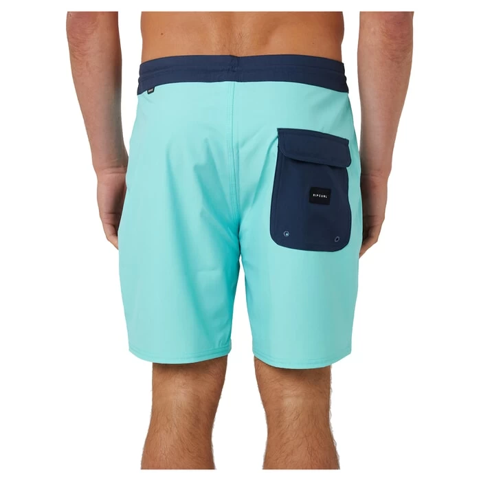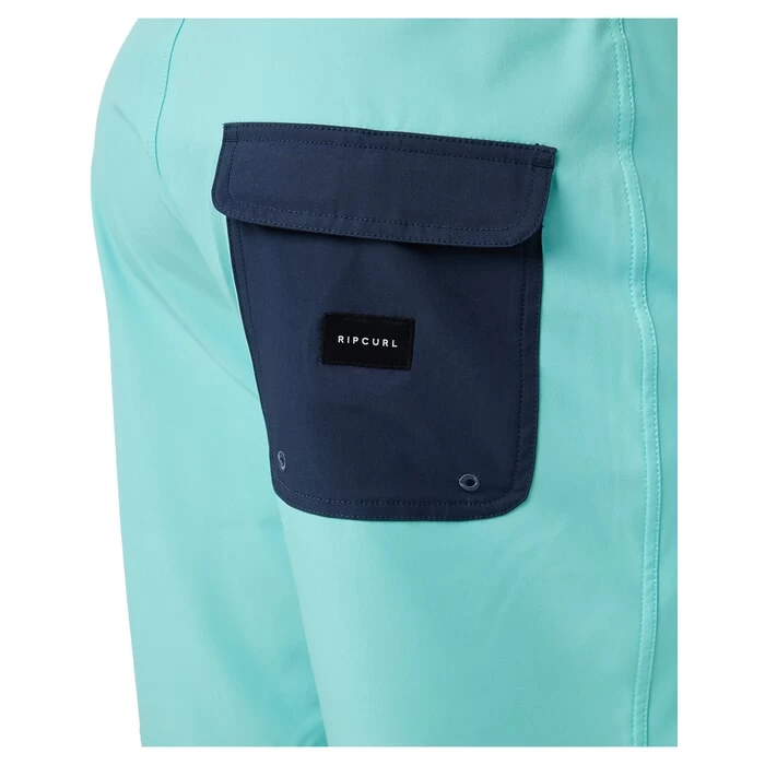 Rip Curl Easy 17″ outseam boardshorts in aqua features Rip Curl Mirage construction. Also features a back pocket. Branding includes a Rip Curl woven label and Rip Curl woven patch. Made with stretch material. Made from 86% polyester and 14% elastane.