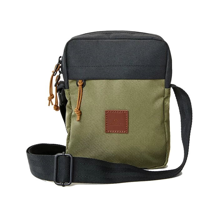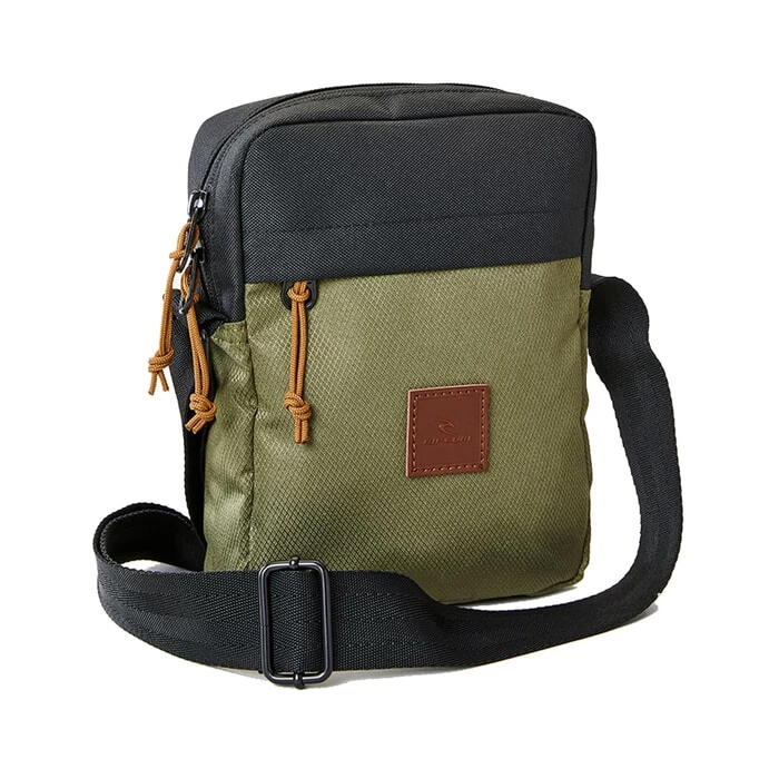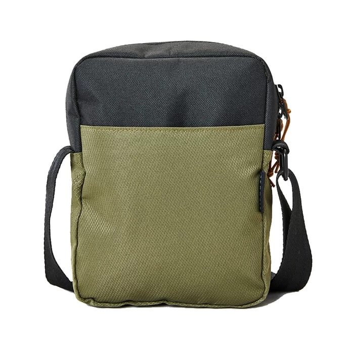 Carry essential valuables in a compact bag like this No Idea Rip Curl cross body bag. The No Idea Pouch Overland bag has two external pockets (one zipped) in which you can stash things that you need quick access to. The main compartment features zip fastening – and therefore is also perfect for keeping everything safely tucked away. A two tone olive and black polyester (recycled – of course) design is complimented by tan coloured zip pulls and matches back to other items in the Rip Curl bags and luggage range.