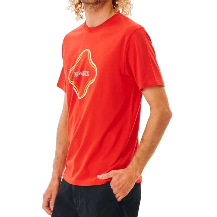 Where would we be without this everyday item of clothing? Whether its short or long sleeve – brightly patterned or classically plain – we expect it must be one of the most widely worn and purchased items of clothing. Rip Curl clearly recognises the versatility of a t-shirt as there’s always a big range to choose from every season – including this Surf Revival Vibrations tee. With a brightly coloured design surrounding clear Rip Curl branding – this men’s red Rip Curl tee shirt will add interest to your outfit.