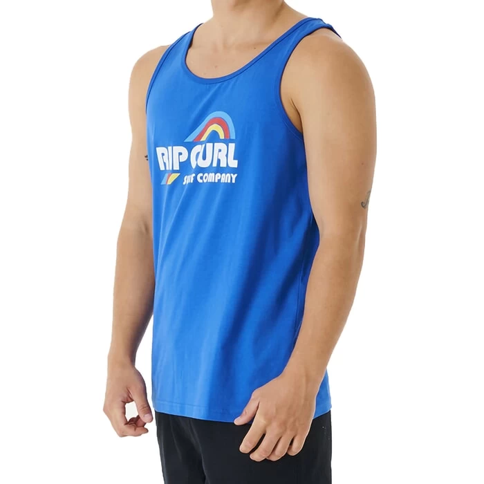 Rip Curl Surf Revival Waving regular fit sleeveless t-shirt in retro blue features a chest print. Branding includes a Rip Curl woven label. Made with cotton jersey. Made from 100% cotton. Part of the Rip Curl Surf Revival range.
