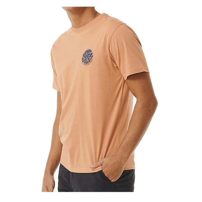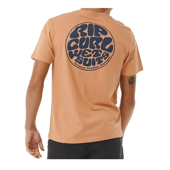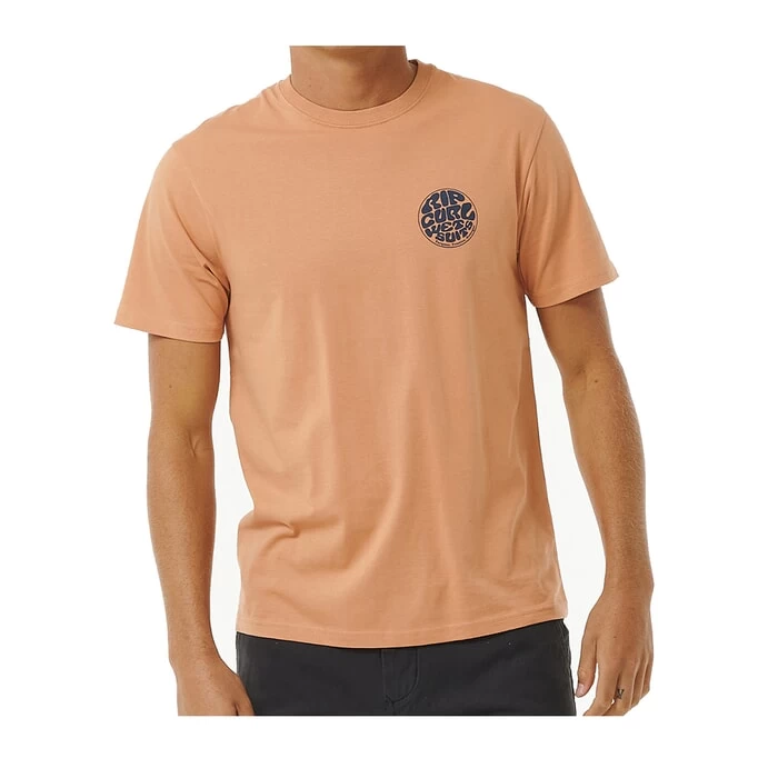 Rip Curl Wetsuit Icon regular fit short sleeve t-shirt in clay features a eco aware manufacture and rear print. Branding includes a Rip Curl logo chest print and Rip Curl woven label. Made with organic fabric. Made from 100% organic cotton. Part of the Rip Curl Icons of Surf range.